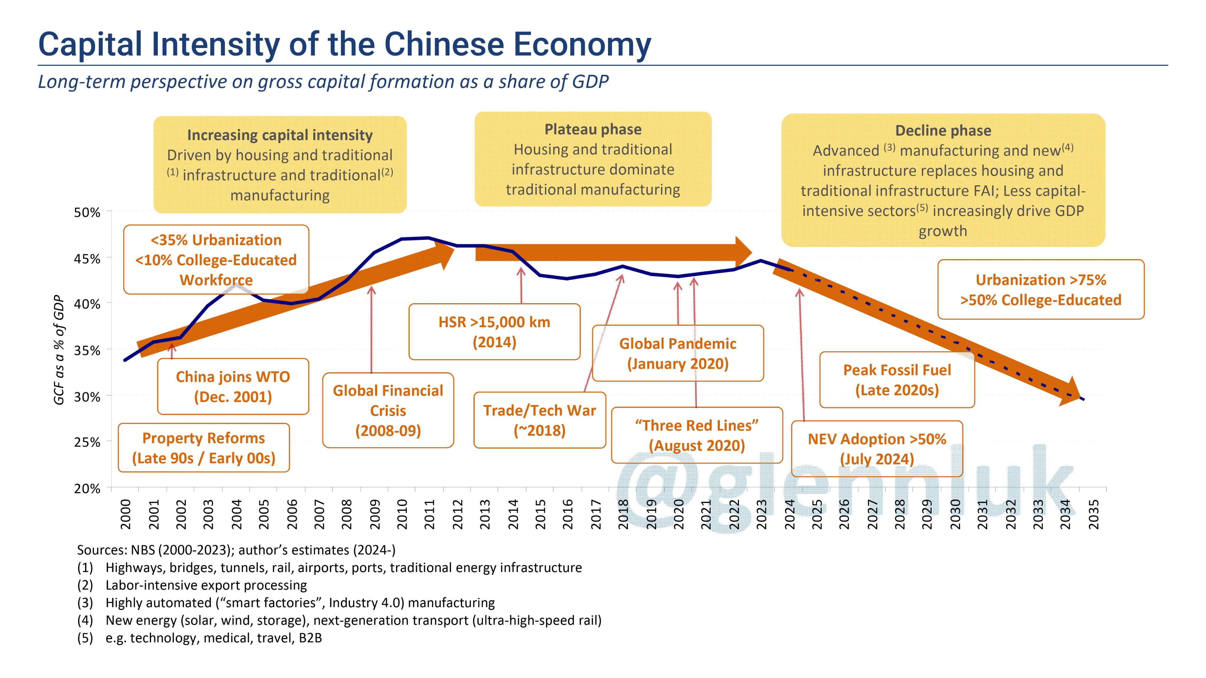 As I wrote, they are unlikely to come anywhere near the 45 percent nonsensically projected by UNIDO (a forecast Wang and others have repeated with insufficient skepticism). China’s capital intensity, as Glenn Luk has depicted, is entering an inevitable phase of decline.