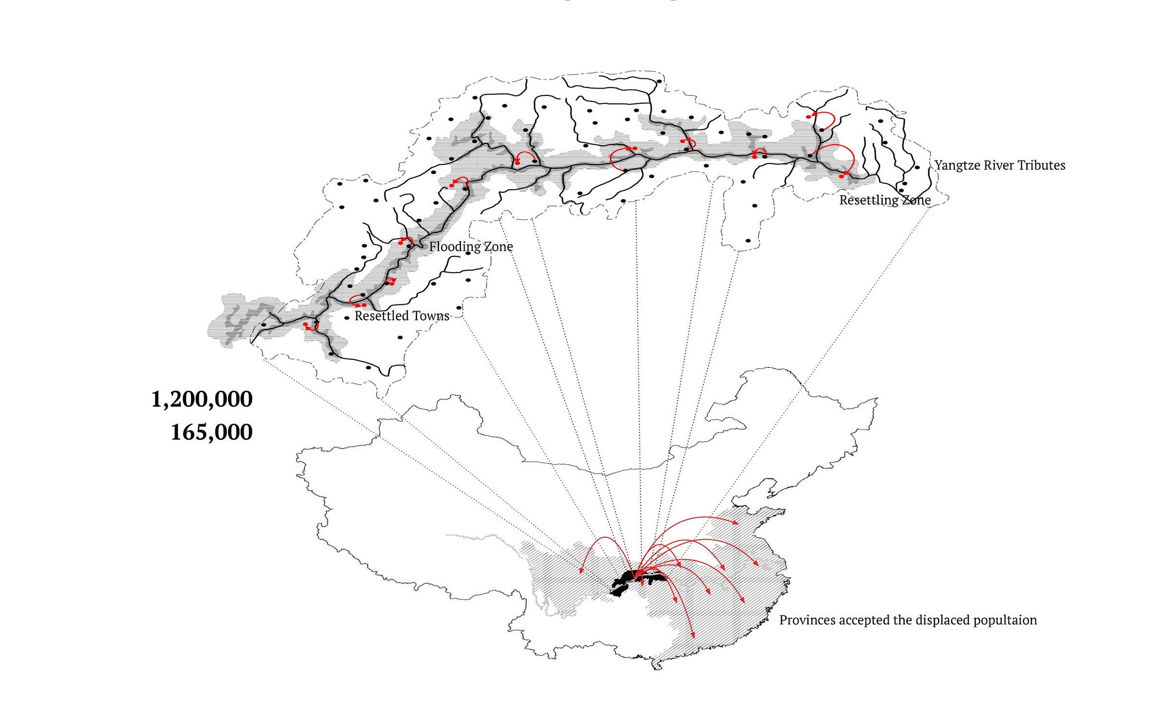 Before the dam, the Yangtze’s floods routinely swept eastward across the countryside—disasters that, over the centuries, claimed the lives of millions.5 The costs and benefits of building the dam have been debated endlessly.6 Not least of which was the 1.5 million so-called reservoir migrants (水库移民) who would be displaced—greater than the population of Estonia. Once the dam project was finalized in 1994, those in its wake had but one option: move. Or as the Party-state slogan put it “move out, settle down, and achieve prosperity.” The entire seat was rebuilt where I now found it: a hundred meters higher, still perched upon the Yangtze.7