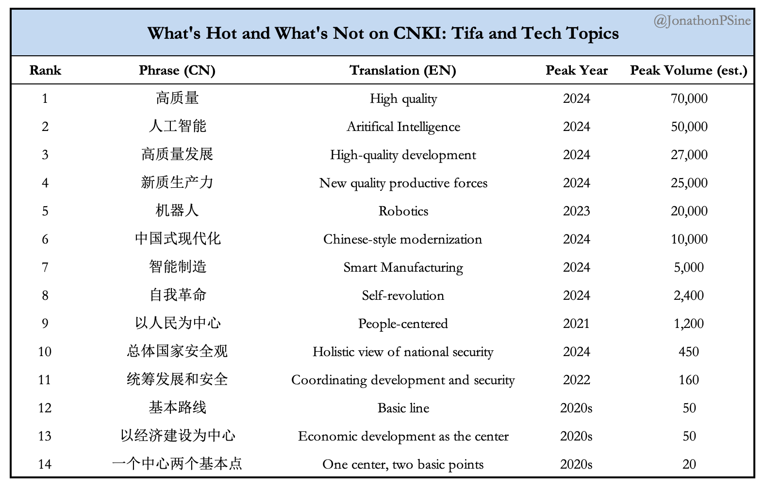 Today is the era of so-called “high-quality” development. Very strangely this does not get a single mention in Breakneck, despite the fact that it is not only Xi’s most frequently harped on economic policy tifa (提法) but also the singular hottest topic on China’s research agenda (per CNKI)—even surpassing artificial intelligence: